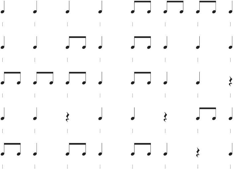 Comenzamos con lo que llamamos "métrica", que significa contar las notas según su tiempo correspondiente.